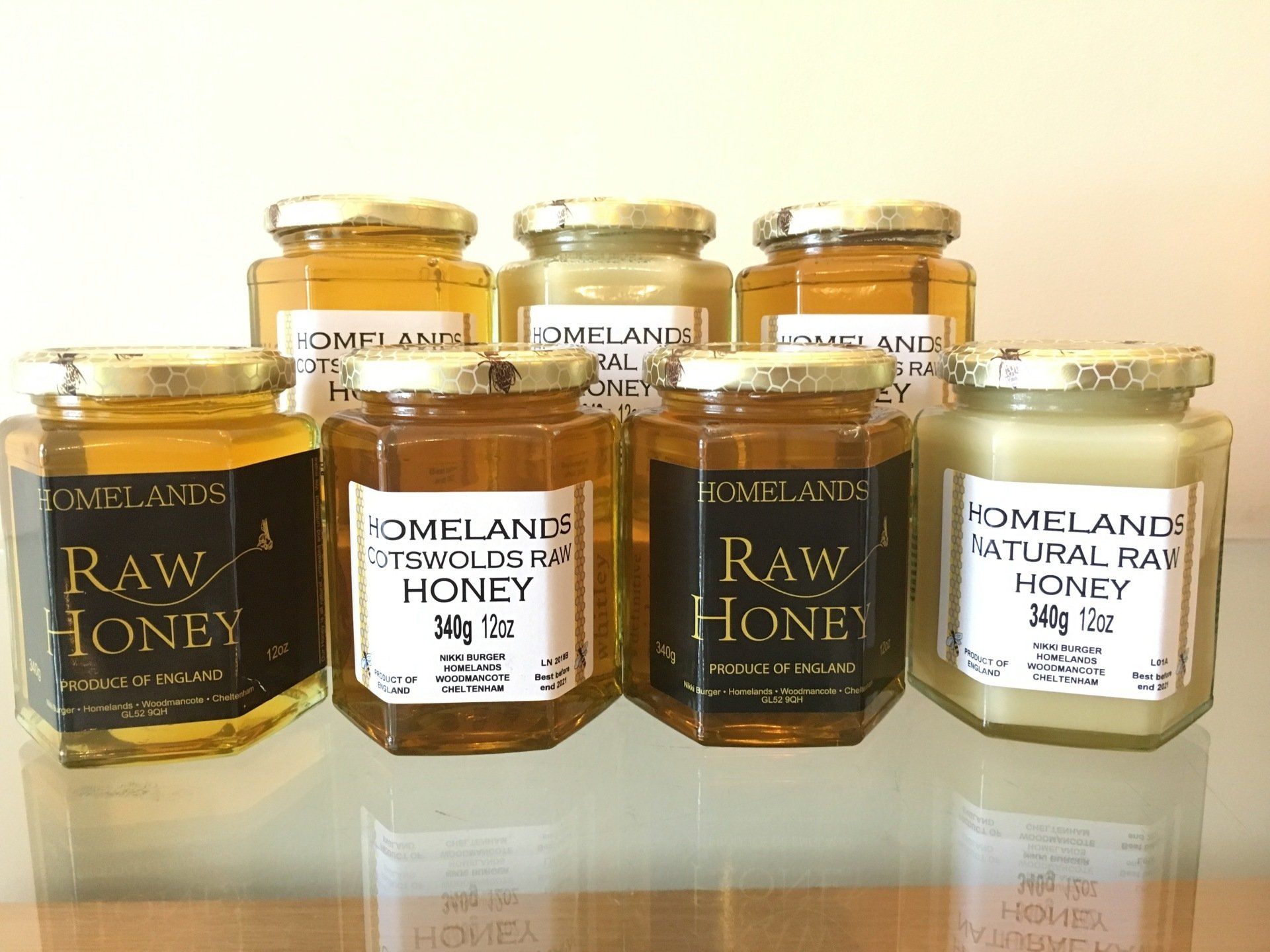 Spring and Summer months from our apiaries around the Cotswolds. The bees also collect pollen from the flowers they visit and consequently some of this ends up in the honey. We want to keep as much of this good stuff in our honey as possible.This is what makes Homelands Honey a truly natural tasting honey.
